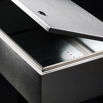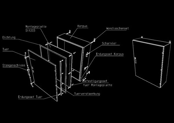 Basiskonstruktion mit Korpus, Tür und Edelstahlscharnier. Ihr Vorteil bei Wandgehäusen von STEELDESIGN sind überzeugende technische Details: